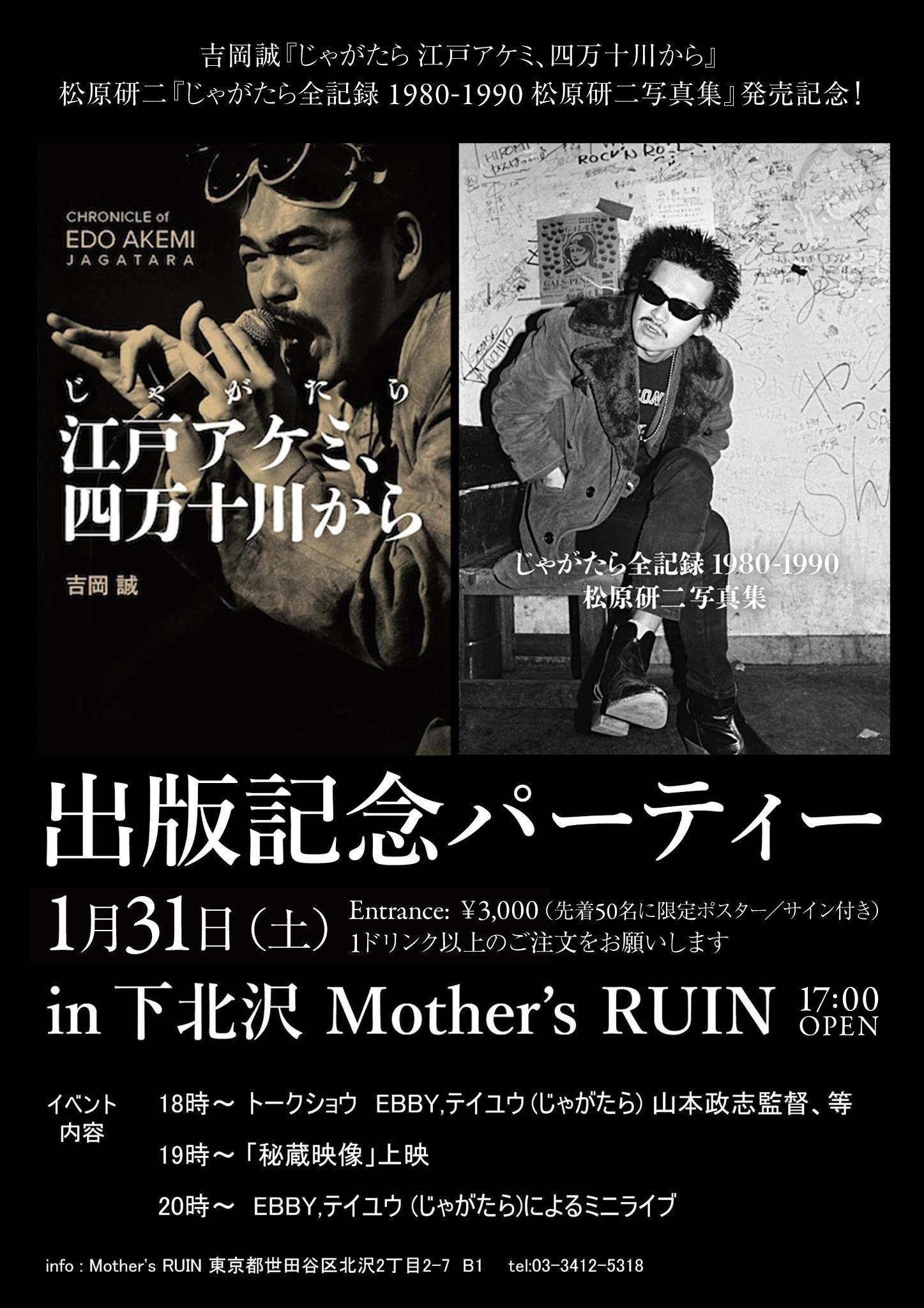じゃがたら会『じゃがたら 江戸アケミ、四万十川から』 『じゃがたら全記録 1980-1990 松原研二写真集』発売記念パーティー